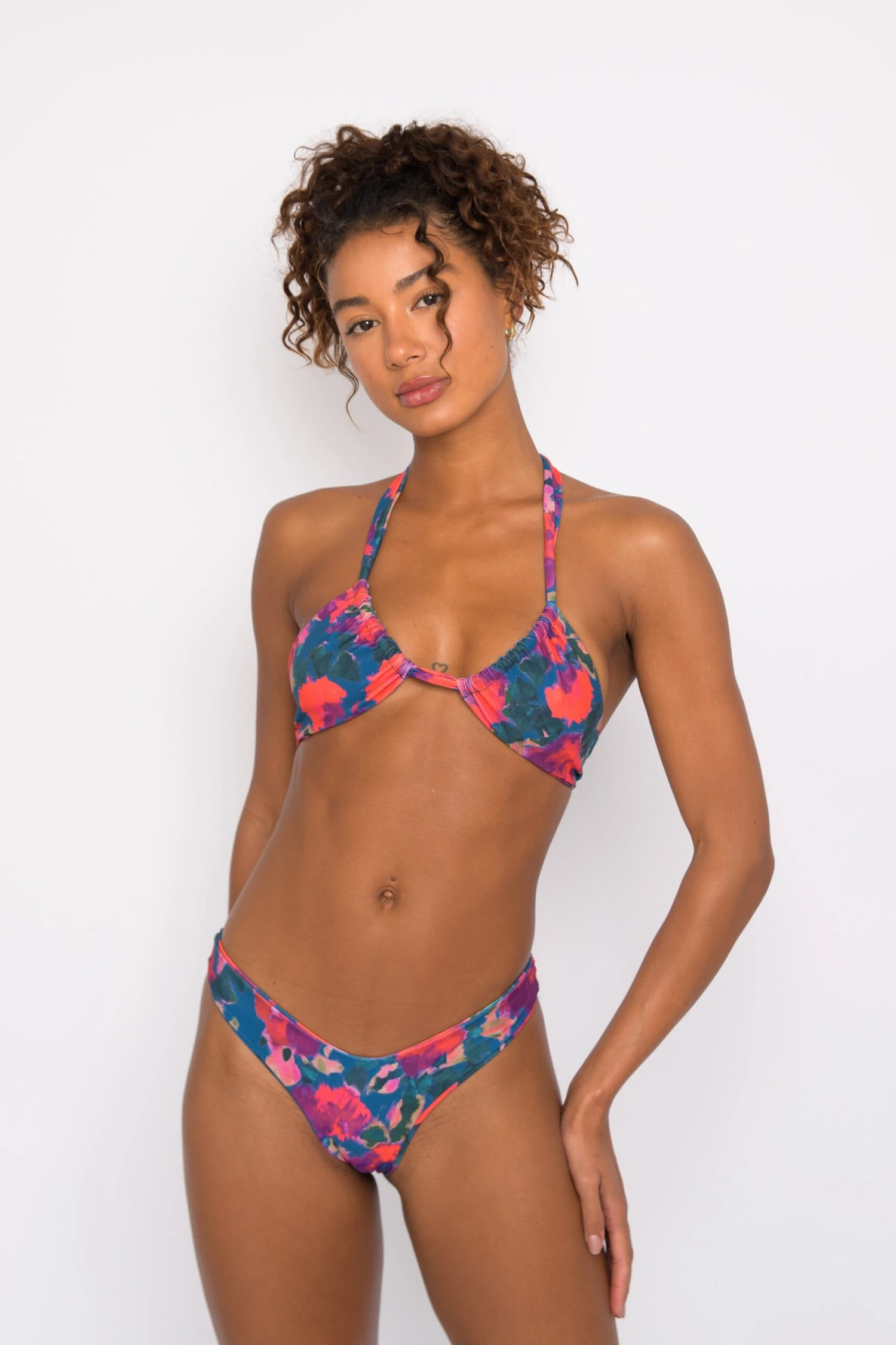 Calling all fans of Ella! Darby is a sliding triangle top with a halter neck and thicker, more supportive straps. Her knotted ties add a fun twist to a classic shape, and her adjustable fit makes sure you’re looking and feeling good!