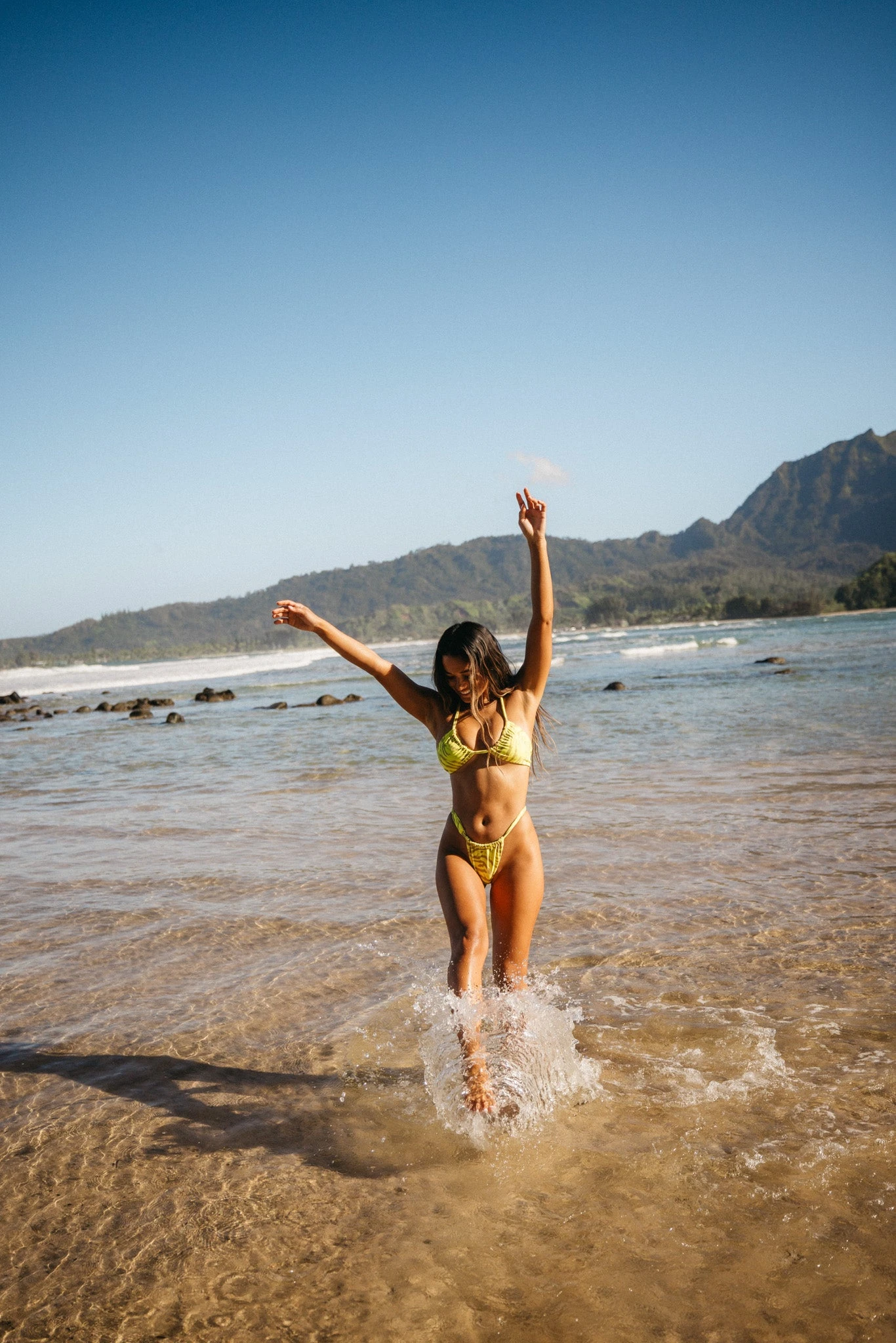 Kiele is 5’9, Bust 32.5″, Waist 25″, Hips 36.5″