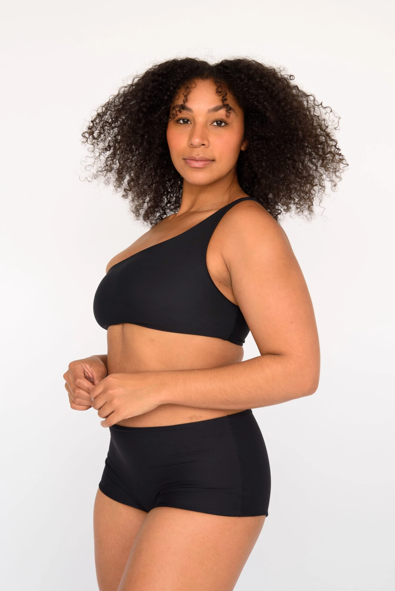 Ellis is super chic yet fun-loving. The one shoulder shape gives an elegant look but the asymmetric back brings life to the party. Ellis holds in “girls” of any size so if you are looking for a bandeau feel with a little extra support, Ellis is your girl.