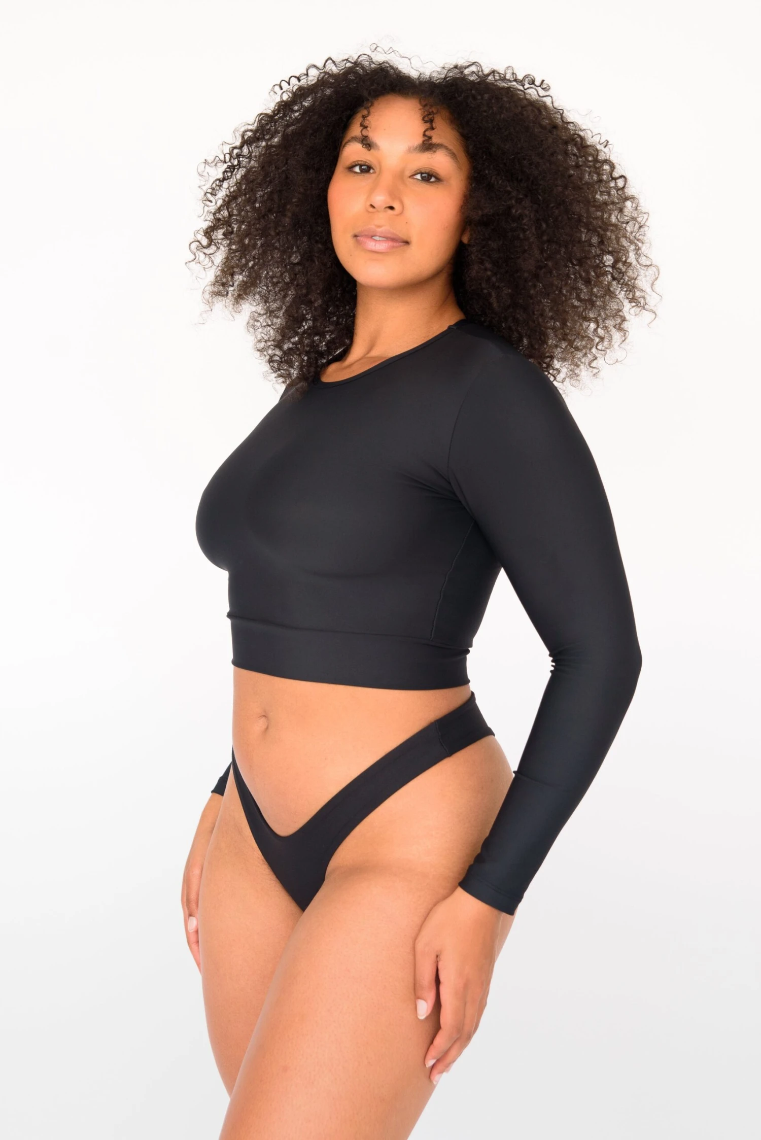 Skatie was founded with surfing in mind, and our Rosie top is made for wave-catching babes. Rosie has the same soft, buttery fabric we’re known for, and her high (but not TOO high) neck and cropped length pair perfectly with both low and high rise bottoms. Lastly, her seamless band has the same no pinch vibe you love from all our suits.