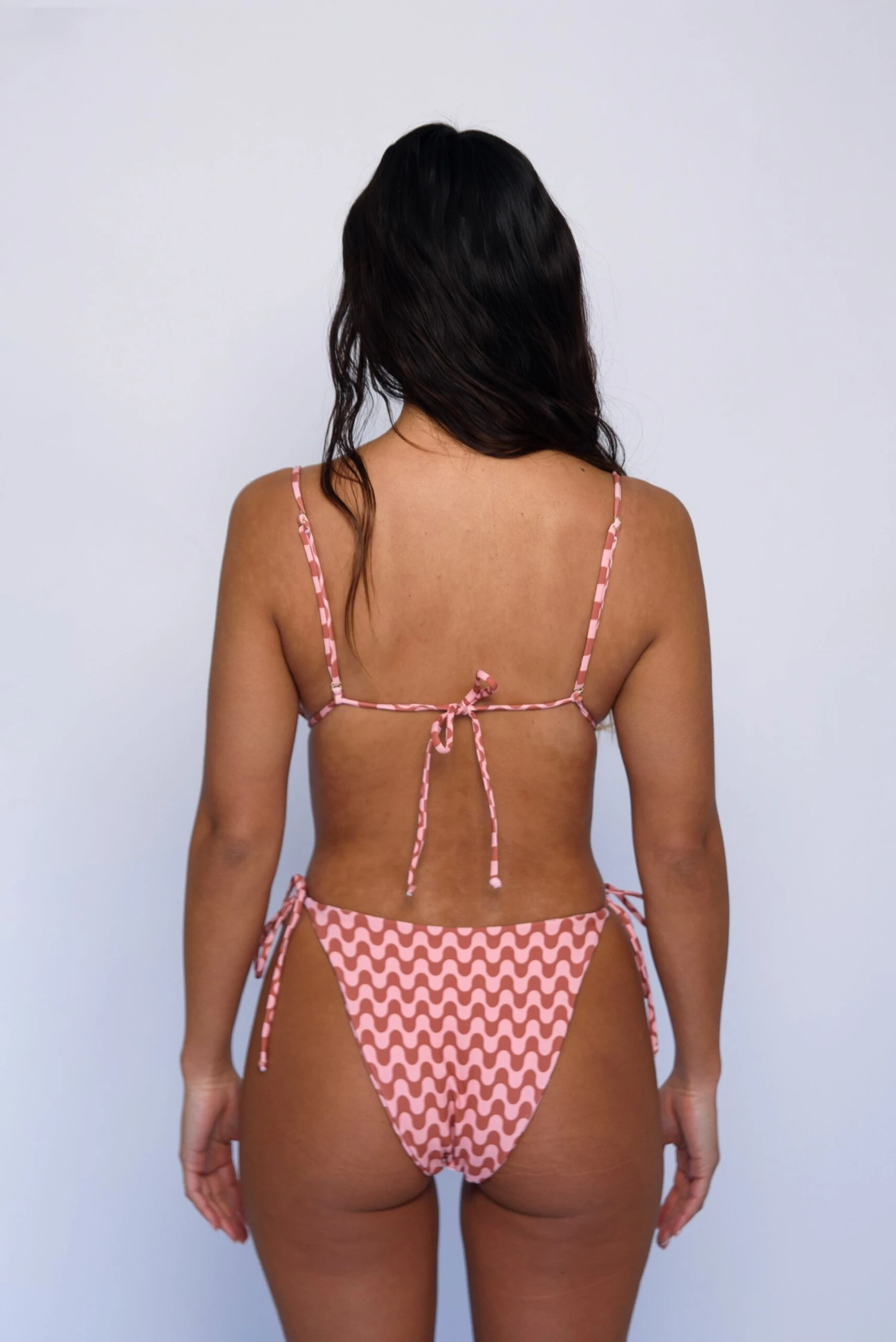Meet Vera, an adjustable side-tie bottom with a mid-rise fit. Her cheeky coverage and high-cut leg pair perfectly with Ella, but don’t worry—she looks good with everything!
